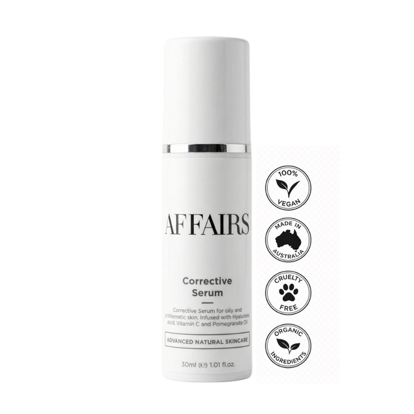Affairs Corrective Serum is a targeted, results-driven serum specially formulated for oily, combination, and problematic skin types - working hard to address multiple skin concerns at once with a potent blend of organic botanicals, peptides, and vitamins. Built on an organic Aloe Vera base, this serum feels lightweight and soothing on skin, delivering intense hydration without ever feeling heavy or congested.