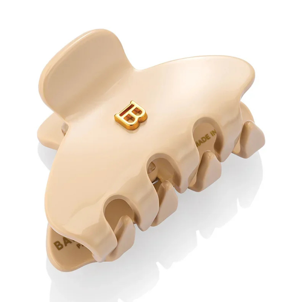 Balmain Hair Clip Small is a small handcrafted claw clip made from durable cellulose acetate and designed with the Balmain’s signature 14K gold plated “B” logo.