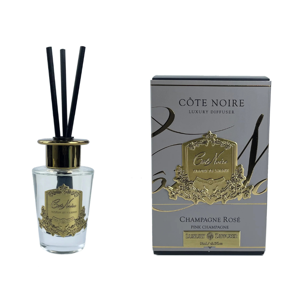 Taking inspiration from classic French perfumeries, the Cote Noire Diffuser is carefully crafted to offer the ultimate sensory experience. The beautiful fragrances of the Pink Champagne leave an enchanting aroma in any space, creating a serene atmosphere that radiates luxury. Soft and delicate, this scent has delightful floral and fruity notes, giving a refreshing feeling of effervescent bubbles and rose petals.