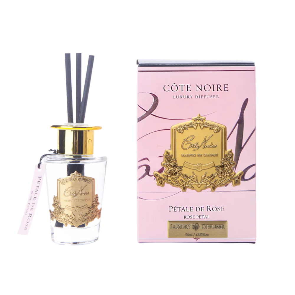 Introducing the Cote Noire Diffuser in Rose Petal, a sophisticated home fragrance solution designed to fill your space with the timeless aroma of fresh, blooming roses.