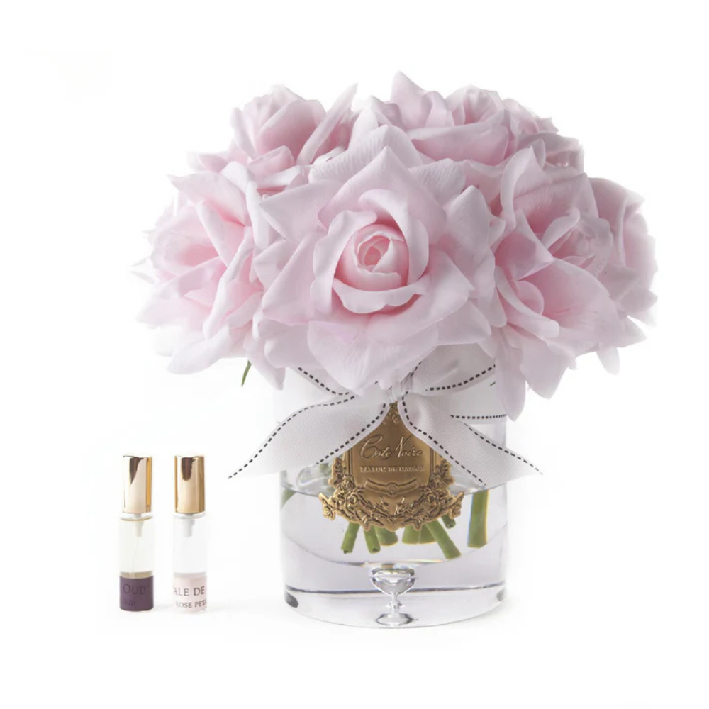 Handcrafted Rose Buds With Natural Coating, Special Gel Formula, Rose Oud Perfume (10ml), Charente Rose Perfume (10ml), Hand-Blown Glass Vessel.
