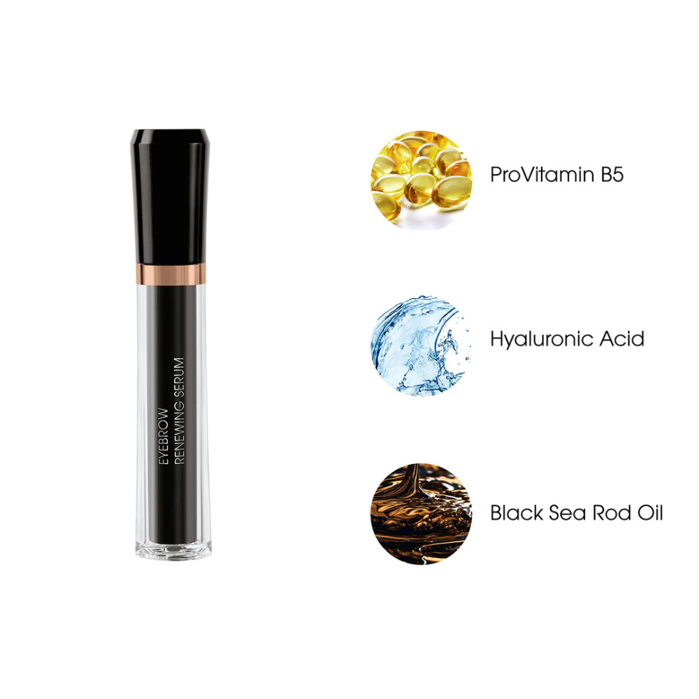 The innovative EYEBROWS RENEWING SERUM naturally regenerates sparse or overplucked brows. Within six to eight weeks, it produces new, unimagined fullness. Combined with nourishing components such as biotin and hyaluron, the highly effective complex of active ingredients with black sea rod oil stimulates both the active and inactive hair roots in the eyebrows, which is proven to encourage their natural growth.